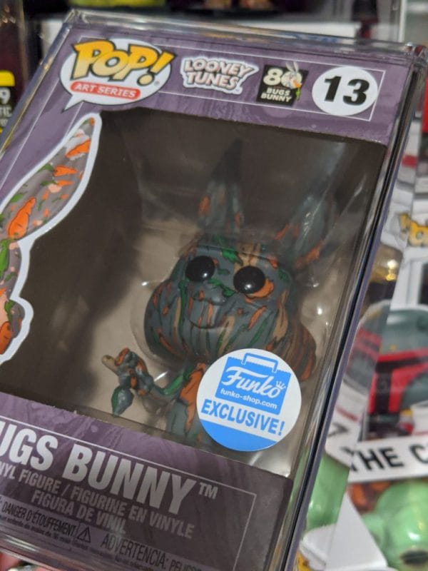 Last but not least from this weeks unboxing was the Bugs Bunny from Funko’s Artist Series. It was a little hard to photograph, since Joe doesn’t take them out of the box… but he is SO cool! The acrylic pour design makes it one of our favorite Looney Tunes Pops.